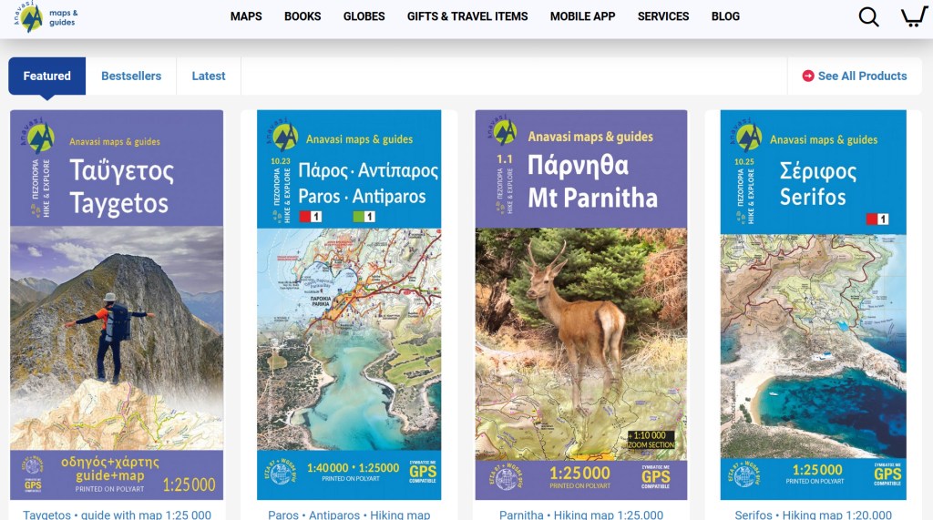 L’entreprise grecque ANAVASI produit des cartes et des livres touristiques et récréatifs sur les milieux insulaires et montagnards grecs. Elle possède une librairie au centre d’Athènes ainsi qu’un site web : https://anavasi.gr/index.php?route=common/home